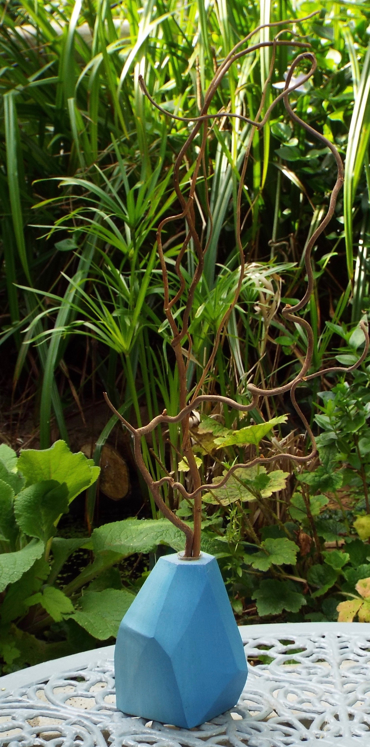 These bud vases are a different way for displaying a few fresh flowers or dried stems and grasses. Each has a plastic test tube so that a few fresh stems can be kept in water. Different native woods are used and some have pebbles added to the design or are painted. Please email Richard if you have a particular vase in mind or would like to see current stock items.