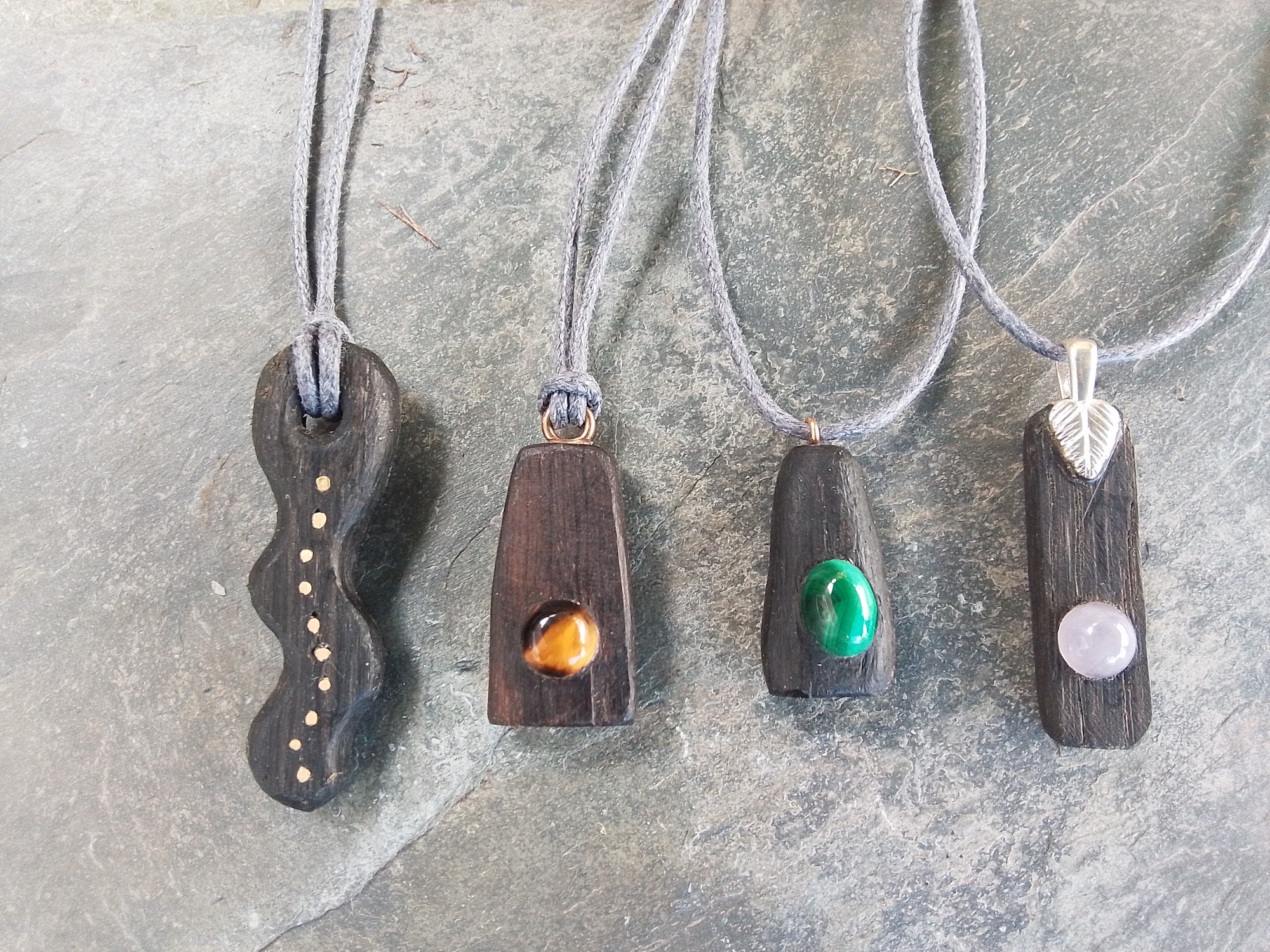 5000 year old bog oak pendants. Please click the image above for a larger view.